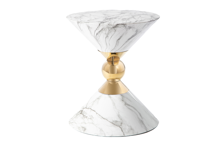 Gold Stainless Steel Rim White & Grey Metal (with a marble look) 20” Dia x 21” H